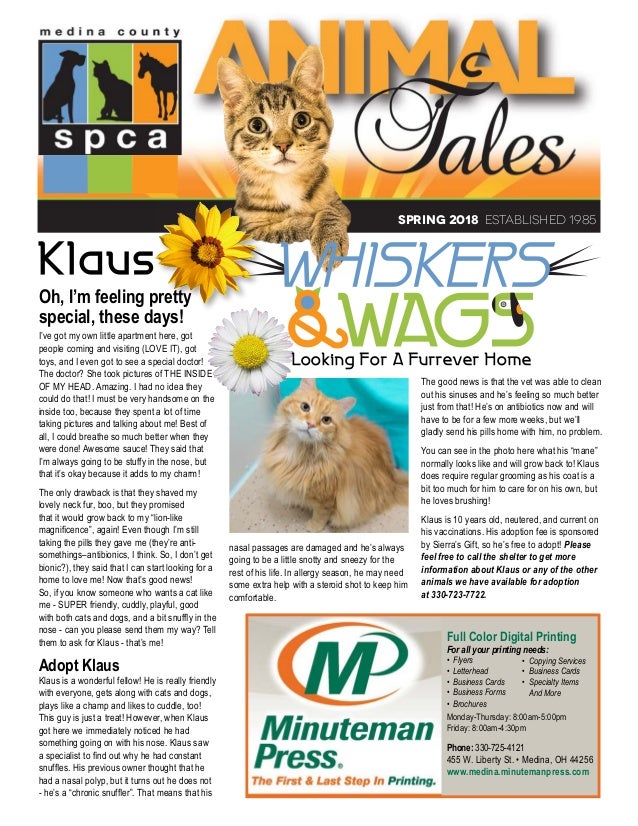 Medina County Spca Animal Tales Newsletter Spring 2018